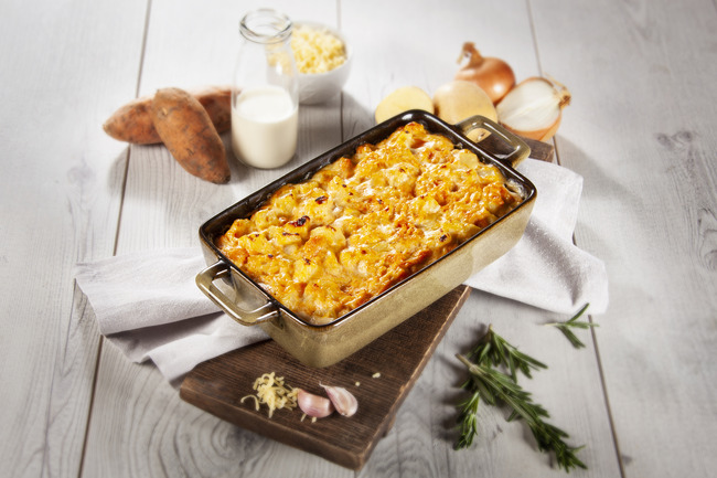 Aardappelgratin met zoete aardappel