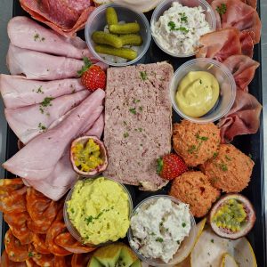 • Garnituren: appelmoes, kriekjes, mosterd uitjes & augurkjes